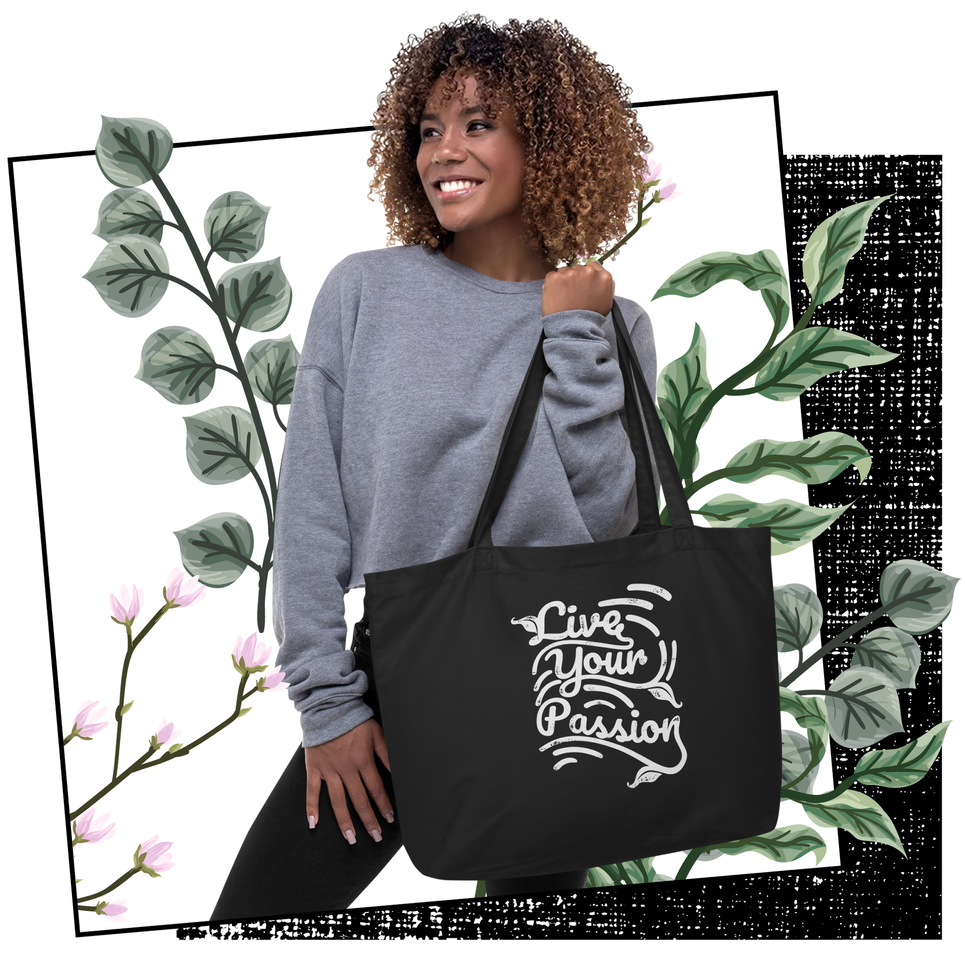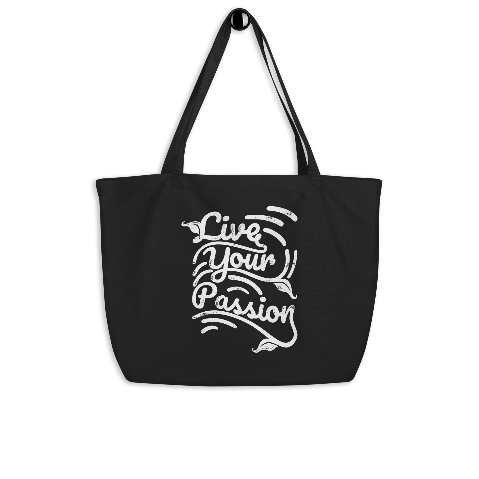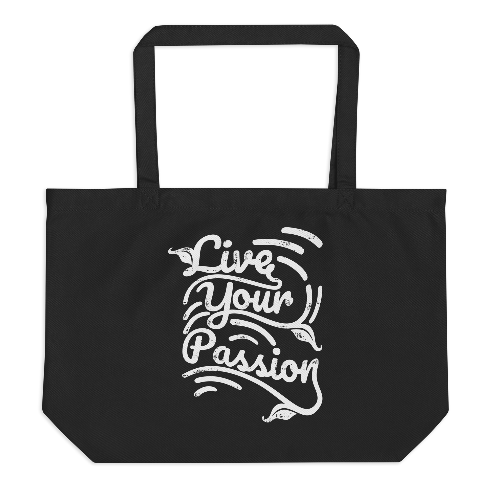 Retro Tote Bag - Live Your Passion Typography Design - Large Size